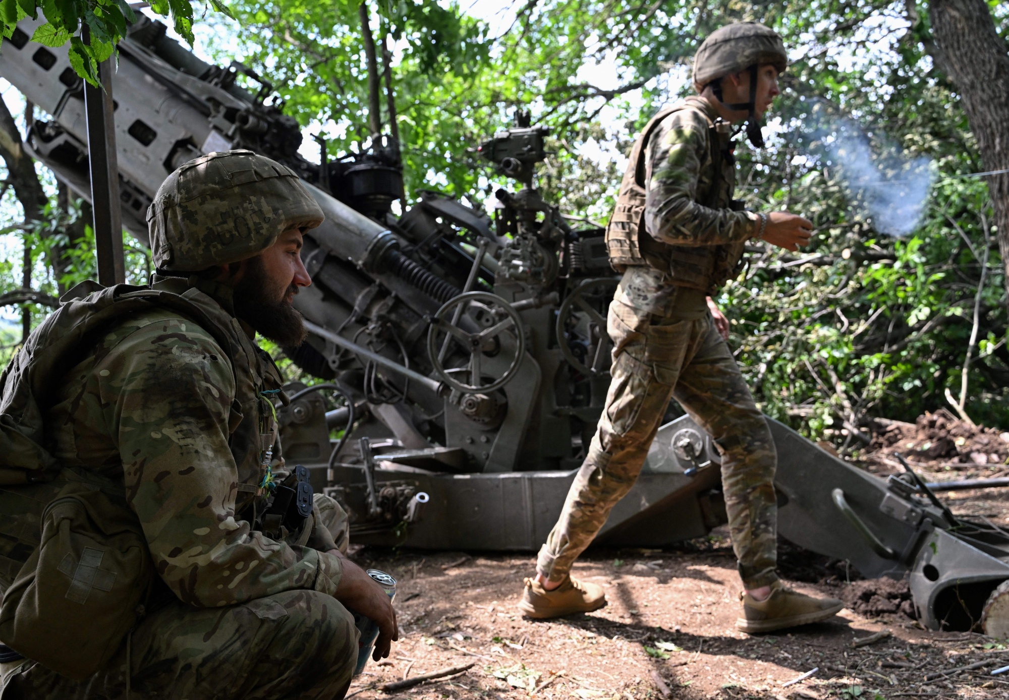 乌克兰炮兵向顿涅茨克地区的俄罗斯阵地开火,使用M777榴弹炮。