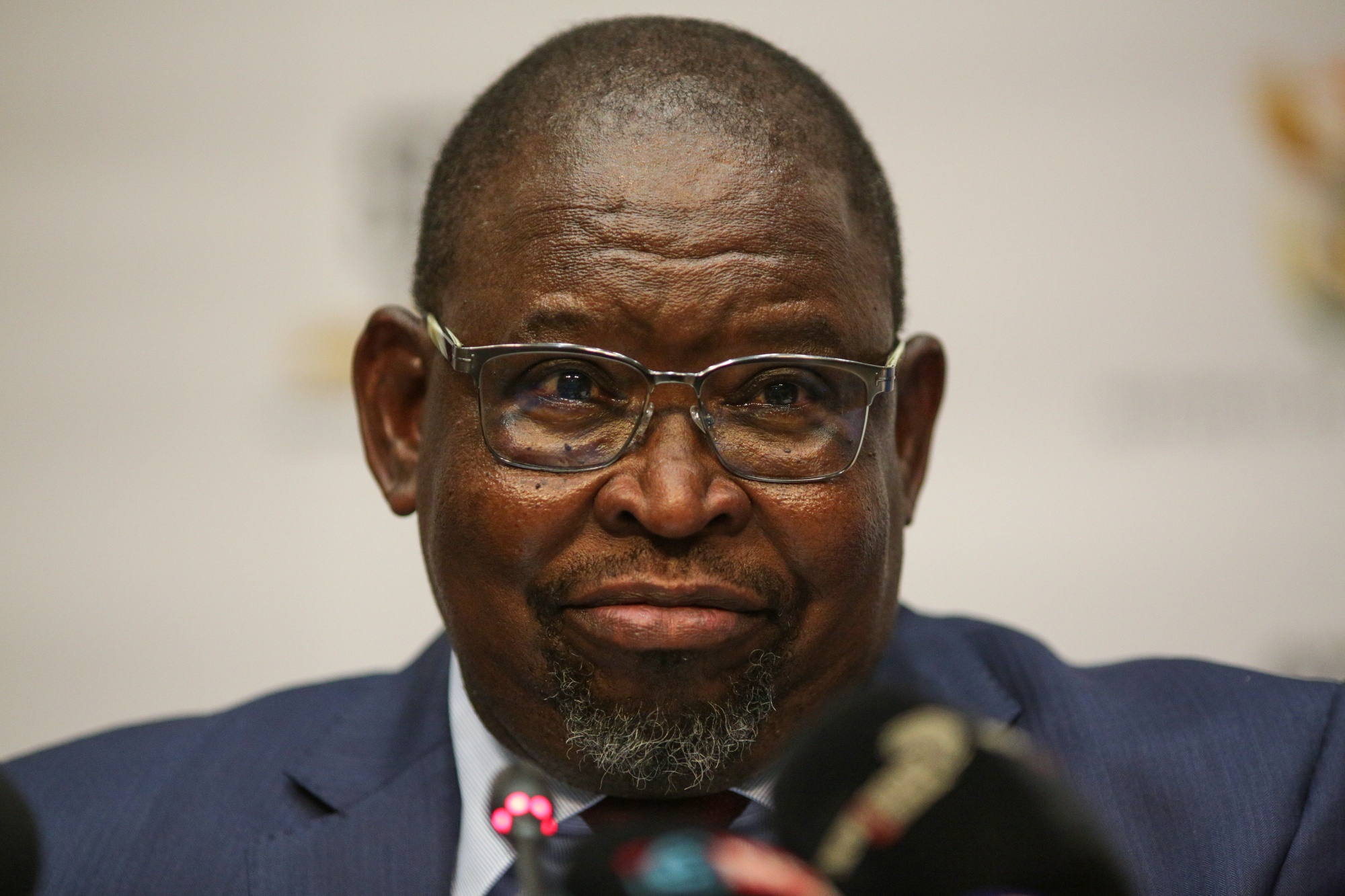 Enoch Godongwana 在 2 月 21 日在开普敦举行的预算报告前。