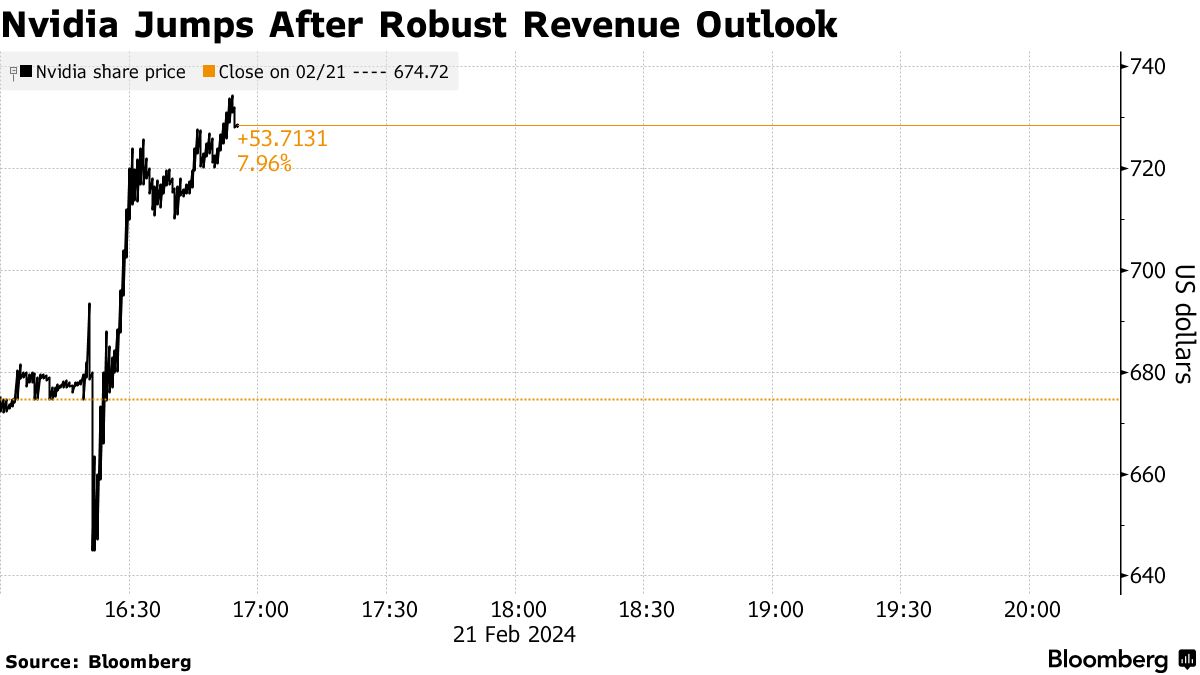 在几乎所有交易都感觉像是Nvidia Corp.季度财报的前奏时,这家人工智能芯片制造商发布了强劲的销售预测,重新点燃了去年股市涨势背后的人工智能狂热。一只科技股权重ETF在前三个交易日下跌后,在晚间交易中上涨。