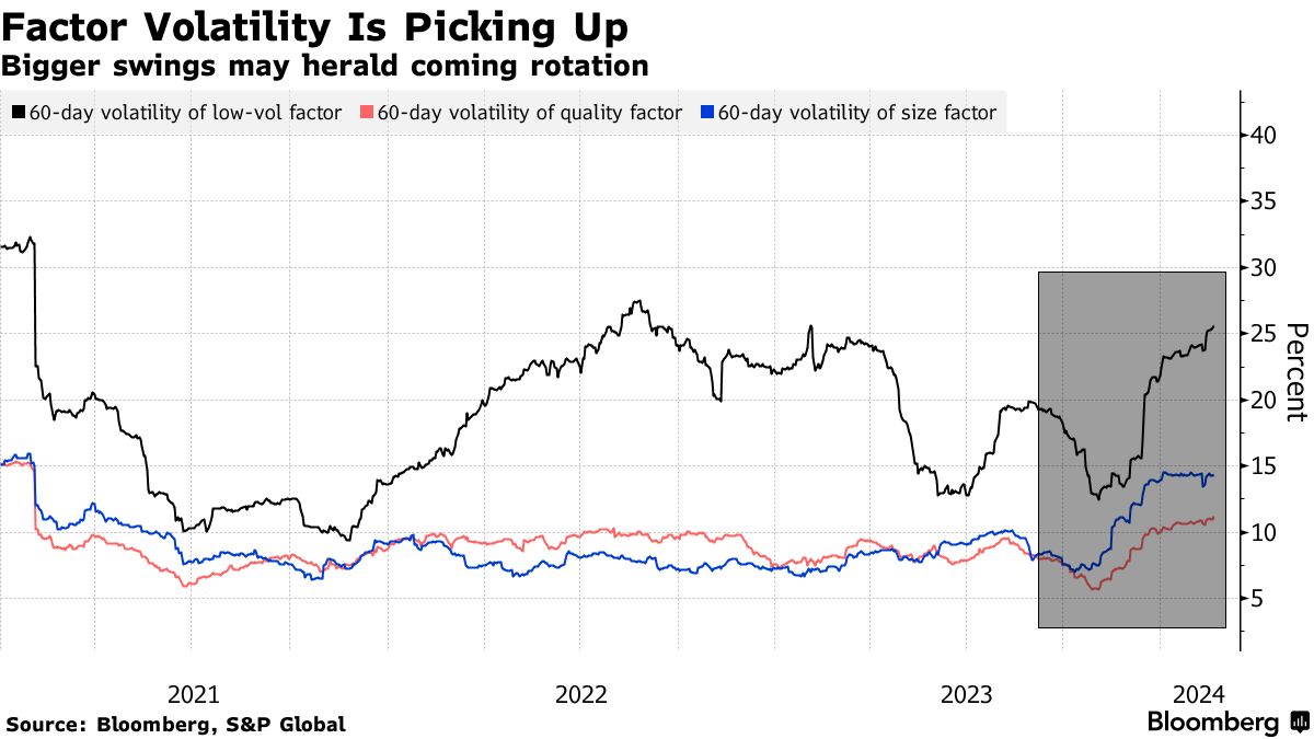 根据诸如股票看起来有多便宜或者多稳定等规则来挑选股票的量化交易员,也就是所谓的因子,正遭受着多年来最剧烈的波动,因为投资者在美国经济在高利率时代继续扩张的情况下苦苦挣扎。