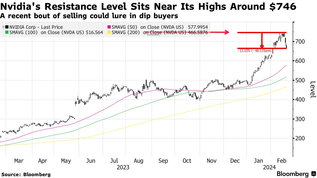 所有人都在关注英伟达公司周三的财报,图表观察者正在监视关键的技术阈值,以评估标普500指数2024年表现最佳的股票——以及整个市场——未来的走势。