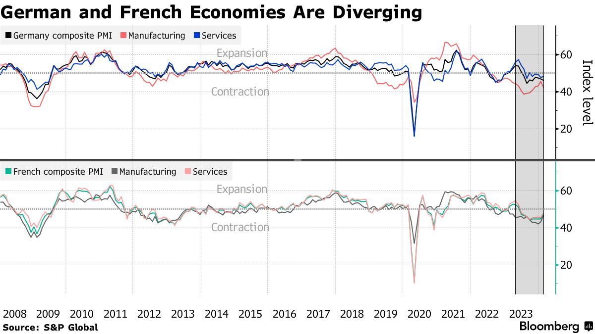 法国的情况更为乐观,收缩幅度远远低于分析师的预测。公司报告需求改善,同时扩大了他们的员工队伍。