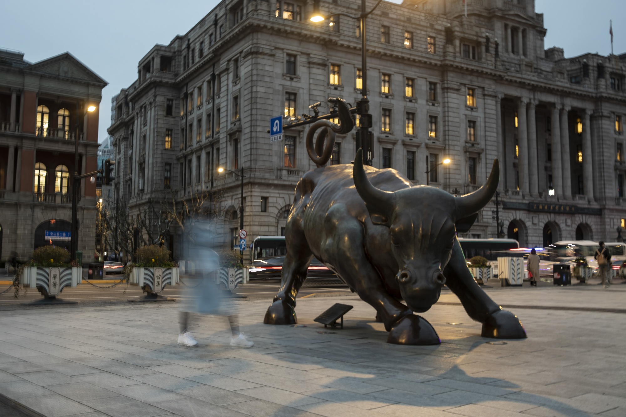 上海外滩的公牛雕像。
