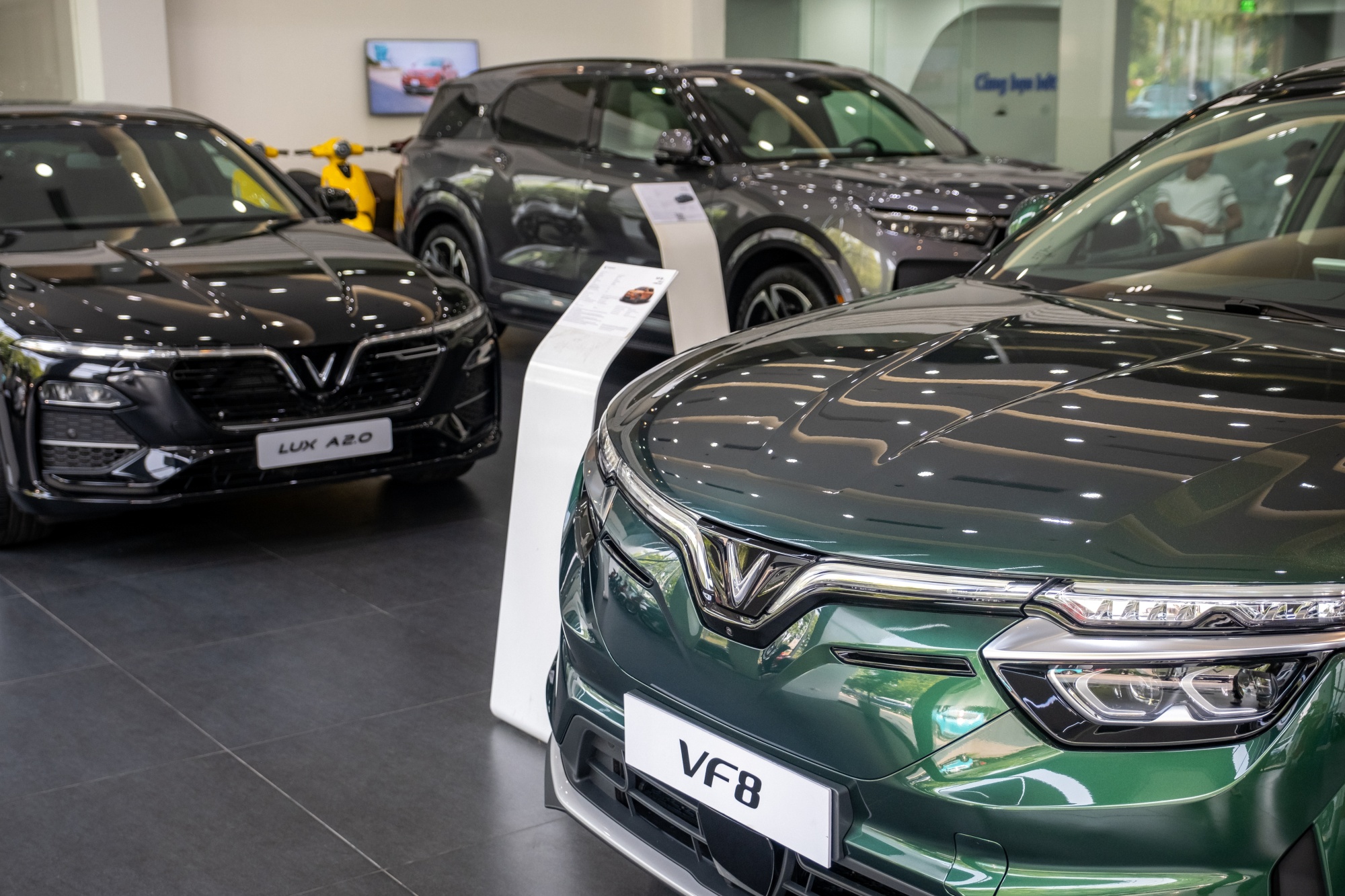 VinFast Auto Ltd. 电动汽车在越南河内公司展厅展出。