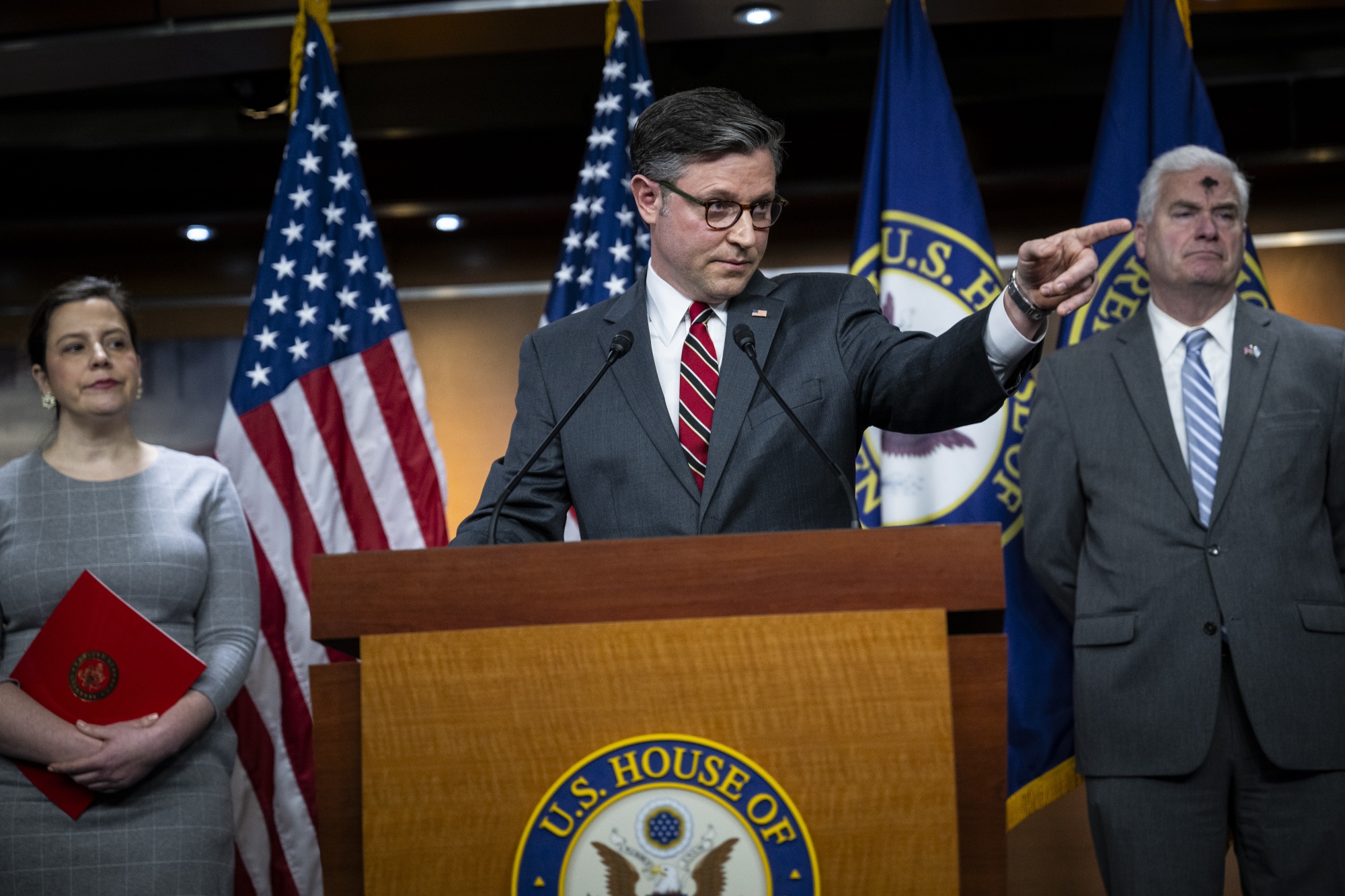 所有人都在关注众议院议长迈克·约翰逊,因为政府关门的风险逐渐临近。摄影师:Graeme Sloan/Bloomberg“现在是否会出现CR或资金中断的压力正在加大,”Wolfe Research的Tobin Marcus说道,他使用了所谓的持续决议的首字母缩写CR,这是高级众议院共和党人表示他们不会再采取的临时机制。Marcus说他对短期关门并不感到意外。