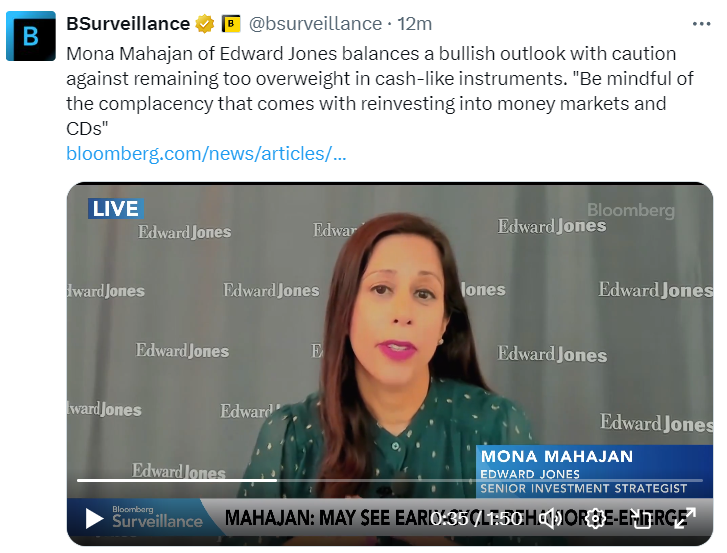 马哈金为去年逃往货币市场基金的投资者详细说明了风险,当时基准10年期国债收益率飙升。她表示,坐等现在会带来再投资风险,随着利率下降,以及错失股市飙升的机会成本。