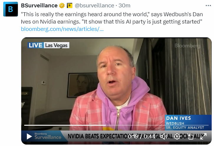 “这真的是全球范围内的业绩。这是多年来最重要的业绩,它显示了这场人工智能盛会——才刚刚开始,”韦德布什证券的丹·艾夫斯说道,他对科技行业毫不吝啬地赞美。