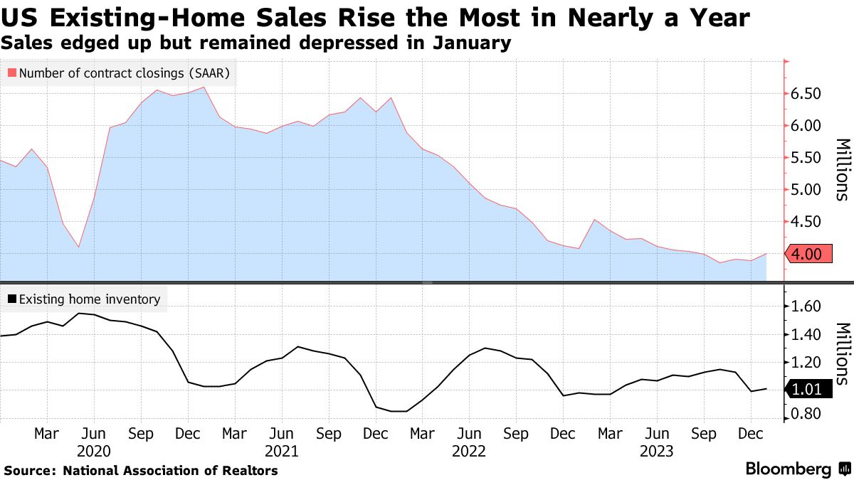 摄影师:Cole Burston/Bloomberg随着购房者在2024年初利用较低的抵押贷款利率,美国二手房销售在1月份出现了近一年来的最大增长。