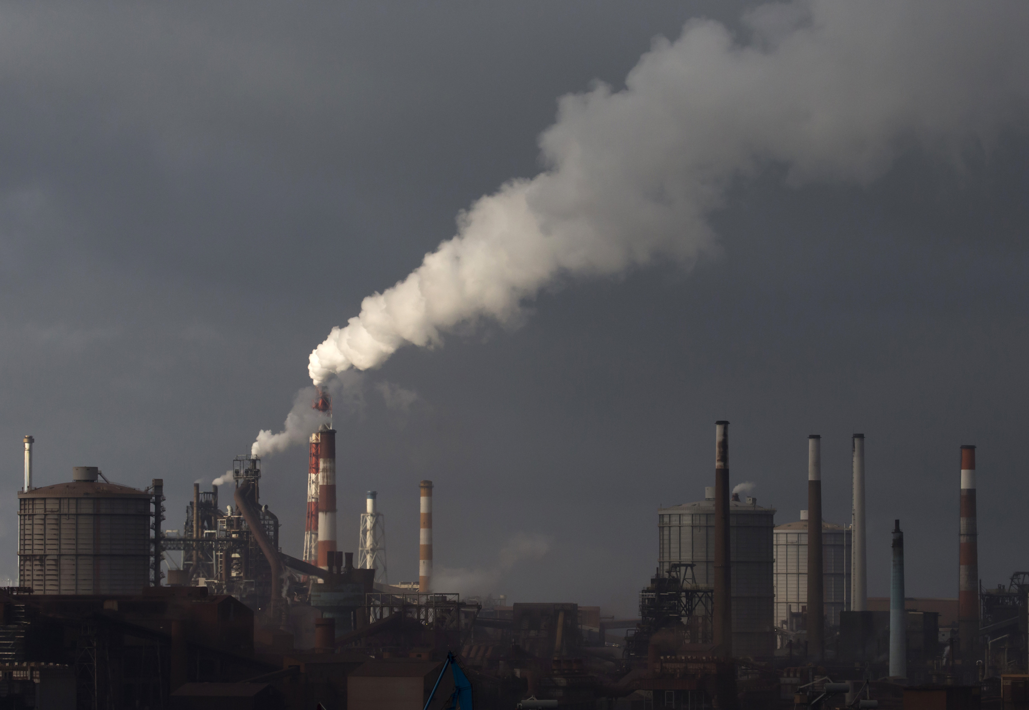 烟囱上升起来的排放物在日本鹿岛的日本製铁住友金属公司工厂。