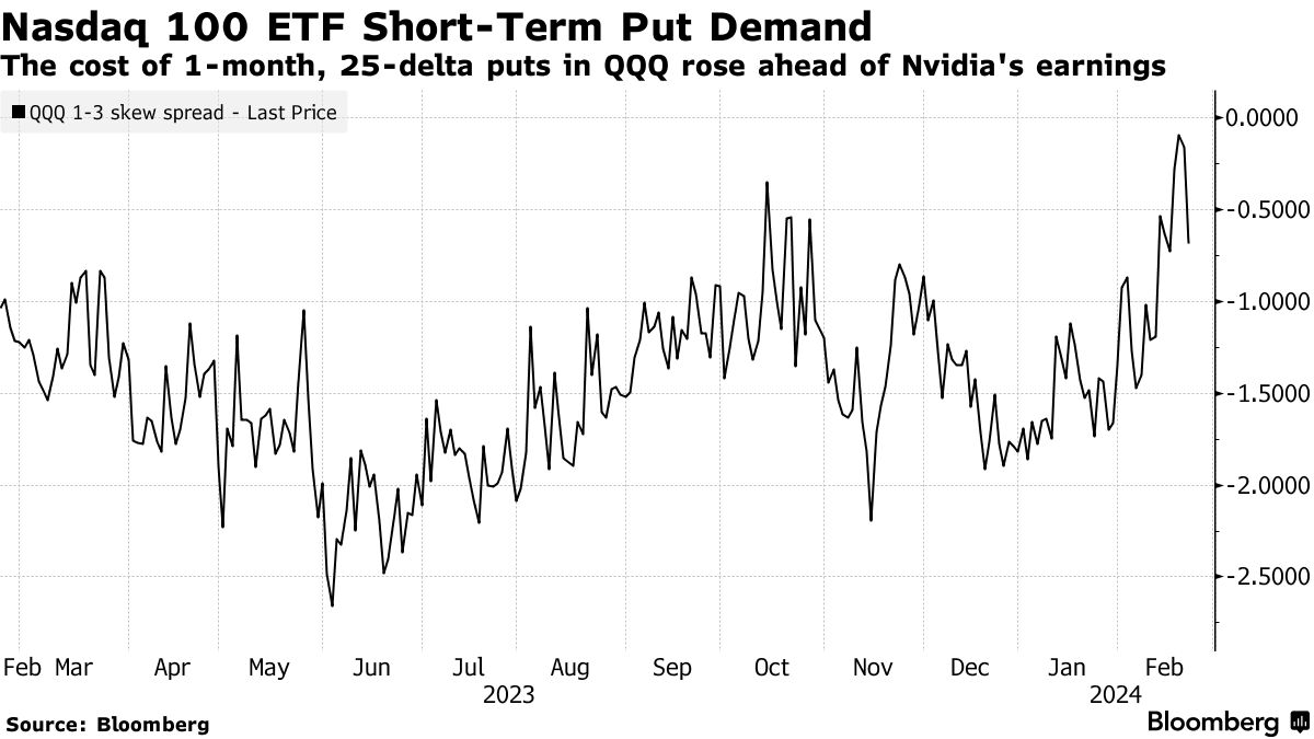 与此同时,对于保护纳斯达克100指数短期回调的期权需求在英伟达发布财报前接近数月来的最高水平后有所放缓。