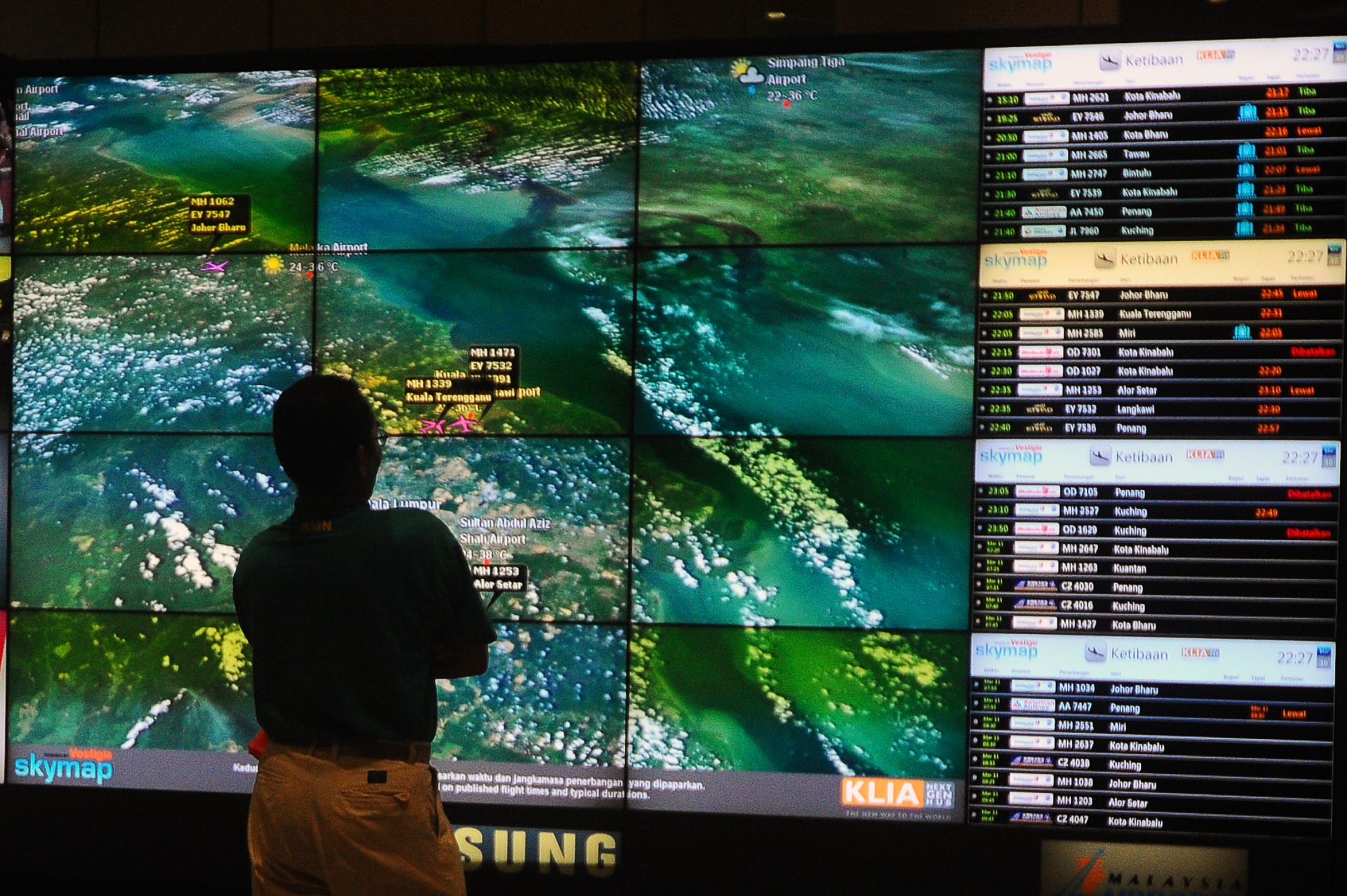 2014年3月10日,马来西亚吉隆坡机场的实时飞行追踪器。摄影师:Joshua Paul/NurPhoto/Corbis News/Getty Images调查人员表示,有可能有人关闭了飞机的通信系统,但没有得出明确的结论。该团队表示,“无法确定MH370失踪的真正原因。”