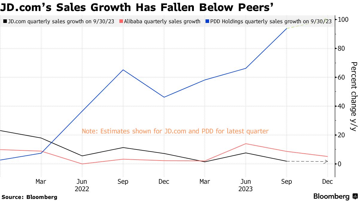 “相对于阿里巴巴和拼多多在全球总交易价值方面的较小规模,京东需要展现比这两家公司更强劲的增长,才能重新激发投资者对其股票的兴趣,”彭博智库分析师Catherine Lim表示。