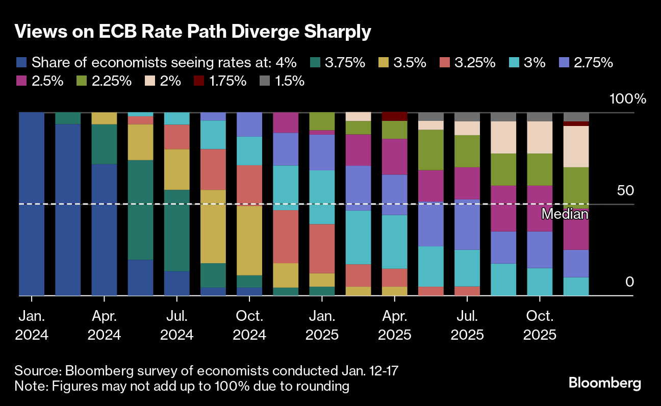 这些言论出现在欧洲央行制定政策不到两周之前,此时欧洲央行将依靠一组新的季度预测,这些预测可能显示通胀放缓加剧。官员们一致认为价格上涨正在减缓。但是,虽然一些人提议最早在三月份降息,但其他人希望更多地确保通胀正在回归2%的目标。
