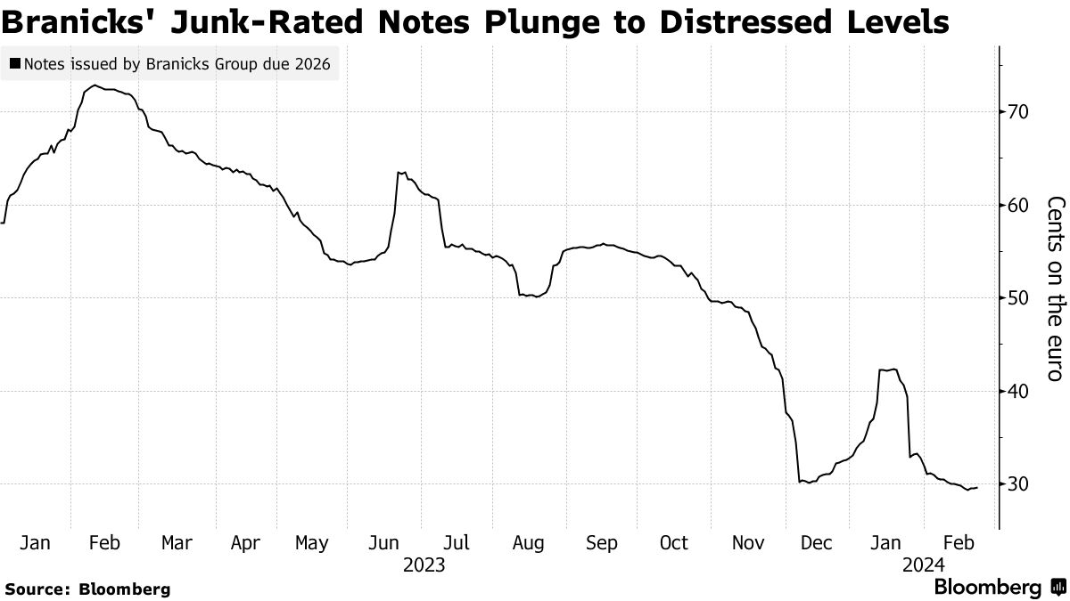 布兰尼克斯在谈判达成新协议时的余地有限,因为需要遵守到2026年到期的4亿欧元债券的契约。上个月,标准普尔全球评级表示,他们并不预见违反条款,尽管布兰尼克斯在今年余下时间将“余地非常紧张”。