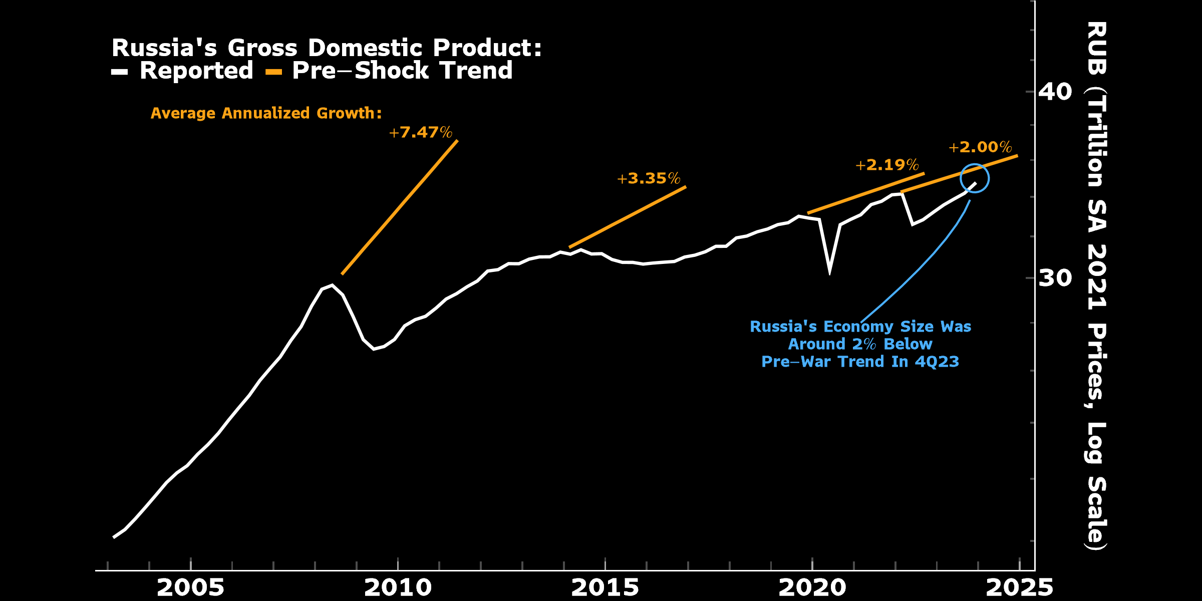 彭博经济学的俄罗斯经济学家亚历山大·伊萨科夫在一份声明中写道:“最新的声明仅标志着对制裁制度的渐进收紧,我们仍然预计俄罗斯经济在2024年将增长约1%至1.5%。”