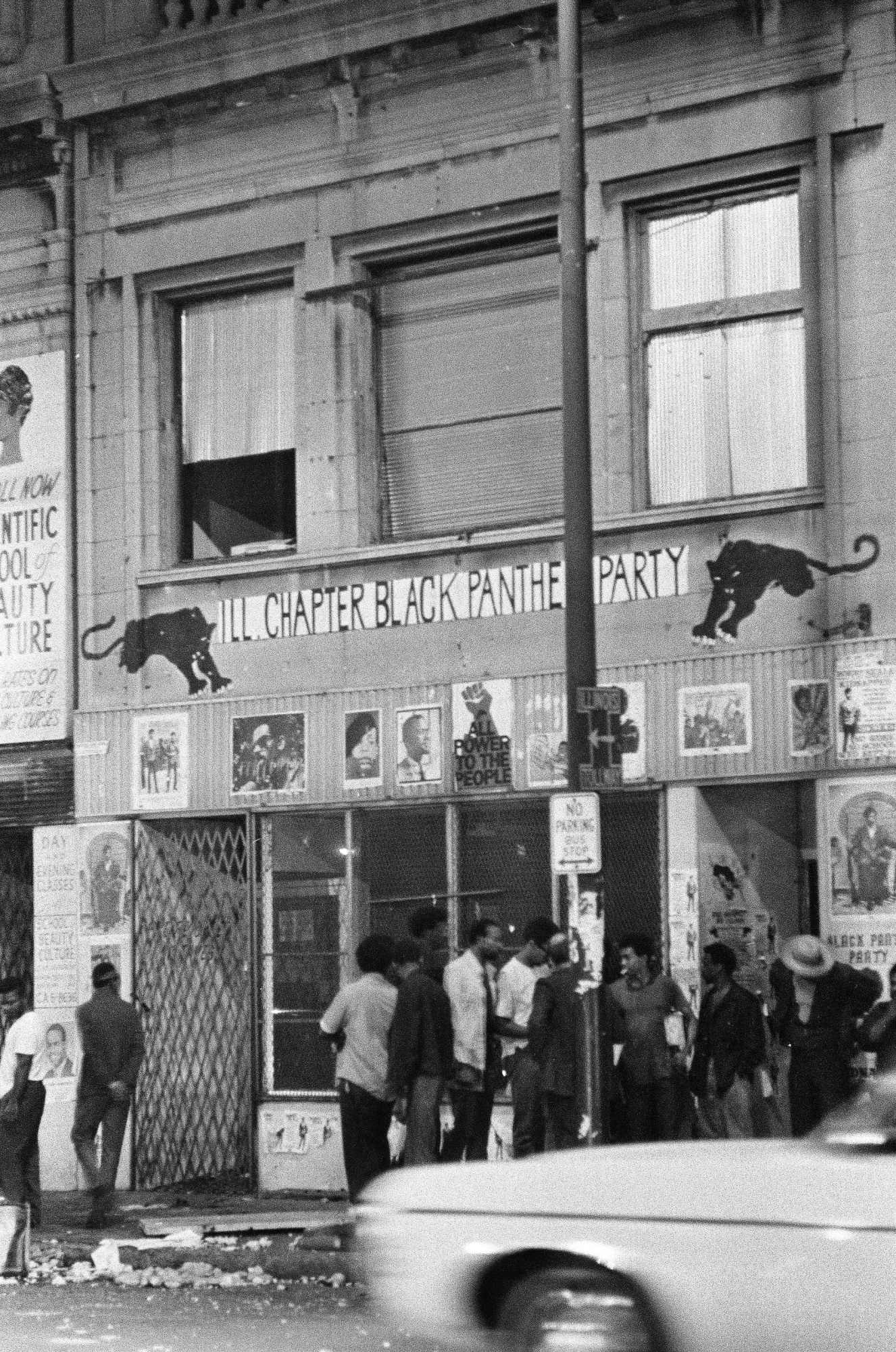 1969年芝加哥2350西麦迪逊街黑豹党总部遭警方突袭后的余波。该建筑物已经被拆除,但与该党有关的其他重要场所仍然存在。