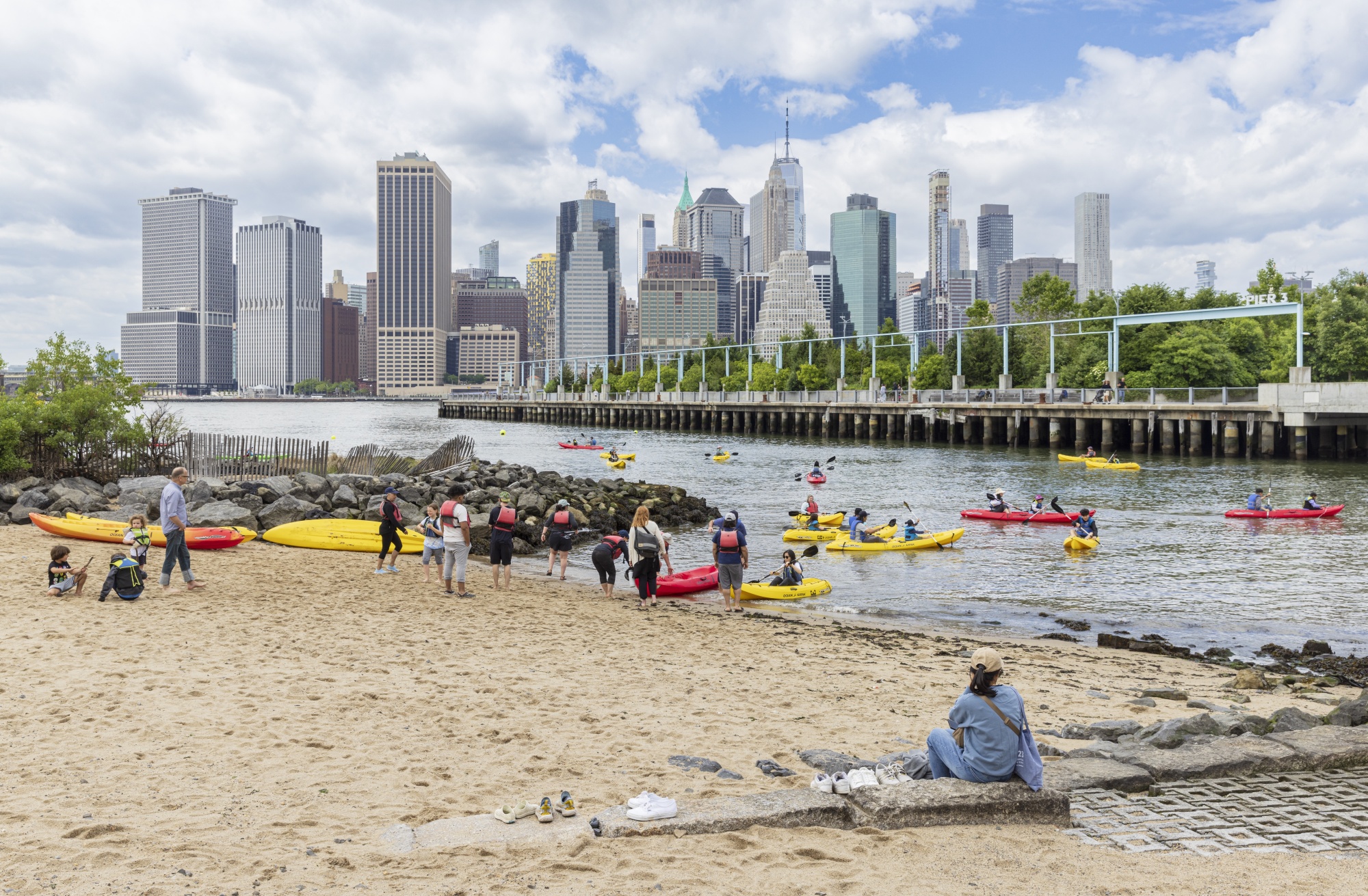 在布鲁克林大桥公园划皮划艇摄影师:埃蒂安·弗罗萨德是什么让布鲁克林大桥公园如此受欢迎?根据景观设计师迈克尔·范·瓦肯堡的说法,这很简单。他的公司领导了十多年的努力,将纽约东河沿岸的85英亩工业用地改造成了这个公园。这个公园拥有一切:运动场地、游乐场、溜冰场,甚至还有供不想玩耍的人使用的田园风光。“任何人都可以将其变成自己的地方,”瓦肯堡在与马克·伯恩斯讨论该设计师新书时解释道。