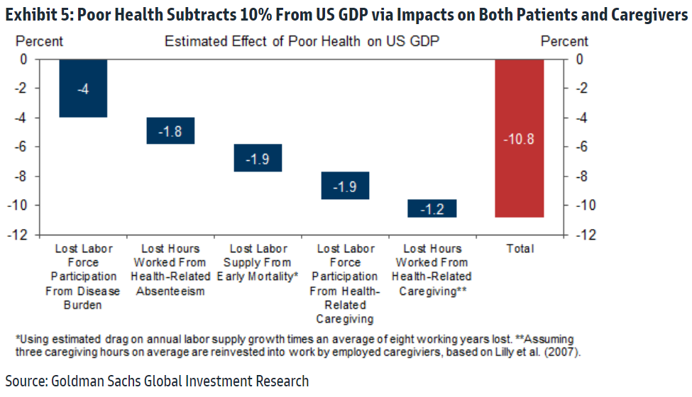 更广泛地说,这对估计“超过当前趋势的健康进展的10年步伐可能将美国GDP水平提高1%。”