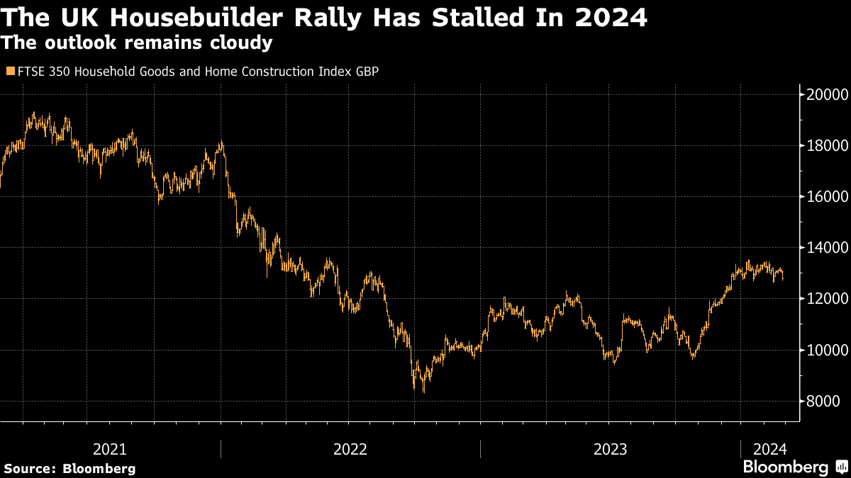 但如果我们放大视角,你会发现英国房地产开发商在2023年下半年享受的巨大涨势在2024年已经遇到了阻碍。