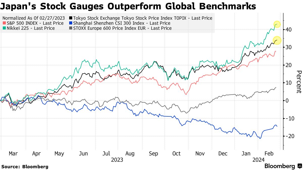 | 日经如何在世界领先的股市反弹中找到了自己的节奏创纪录的日本利润显示日经准备好创历史新高黑石看好日本股票成为日本银行政策转变的大赢家 |
