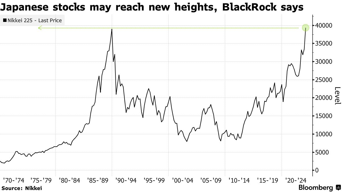 周一在每周市场评论中,由Jean Boivin和Wei Li领导的团队重申了对日本股市的超配推荐,称股票可以“超过历史最高水平”。