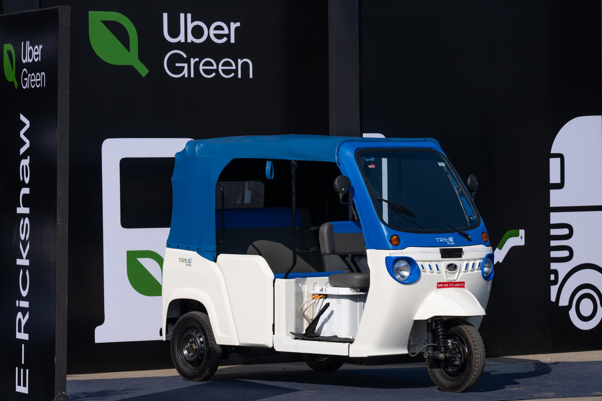 马恒达最后一英里移动有限公司。特雷奥SFT电动三轮车在上周五的优步活动中。