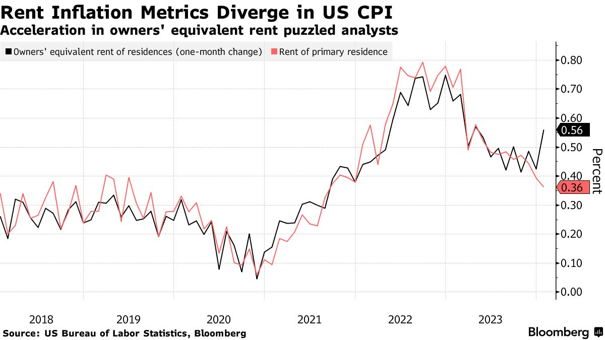 在消费者价格指数中,业主等价租金的激增——是CPI中最大的单个组成部分——是2月13日公布的整体一月份CPI数据的一个主要因素。比预期更高的CPI数据已被美联储官员作为推迟广泛预期的降息的理由。