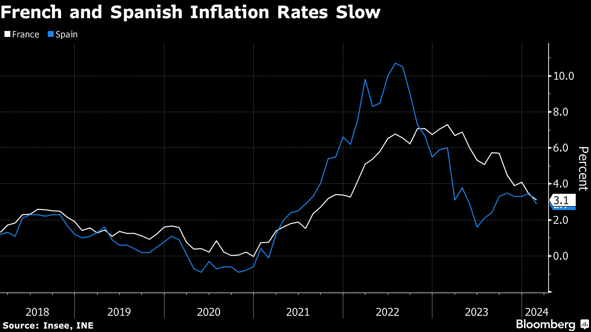 “我们正在赢得对抗通胀的战斗,”法国财政部长布鲁诺·勒梅尔在X(前称Twitter)上发文称。“到年底,我们应该接近我们的2%目标”