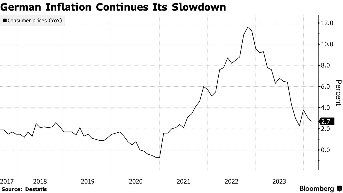 德国通胀进一步放缓,支持欧洲央行的降息计划 - 彭博社