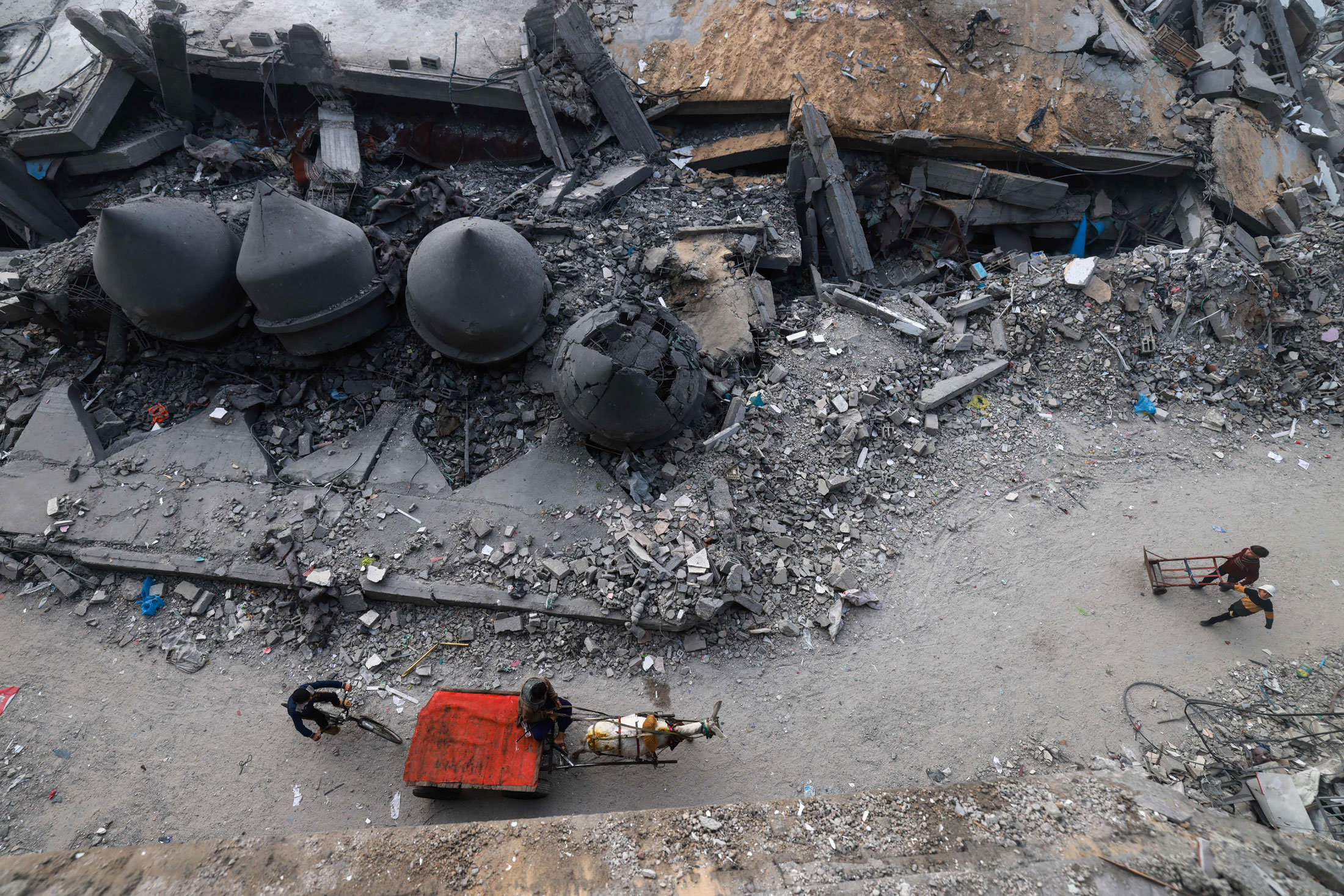 一辆手推车经过一座在以色列空袭中被摧毁的清真寺,位于加沙的拉法。摄影师:穆罕默德·阿贝德/法新社/盖蒂图片社约旦外交部长艾曼·萨法迪在本月早些时候在慕尼黑安全会议上接受采访时表示,“‘整整一代’阿拉伯人‘现在不相信与以色列和平的可行性’。”