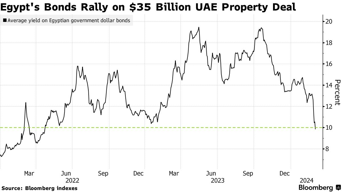 | * 中东洞察:埃及获得阿联酋纾困,埃及镑即将自由浮动(1) * 埃及债券因阿联酋交易上涨,埃及镑在黑市上涨 * 埃及在35亿美元土地交易后获得首笔阿联酋付款 |