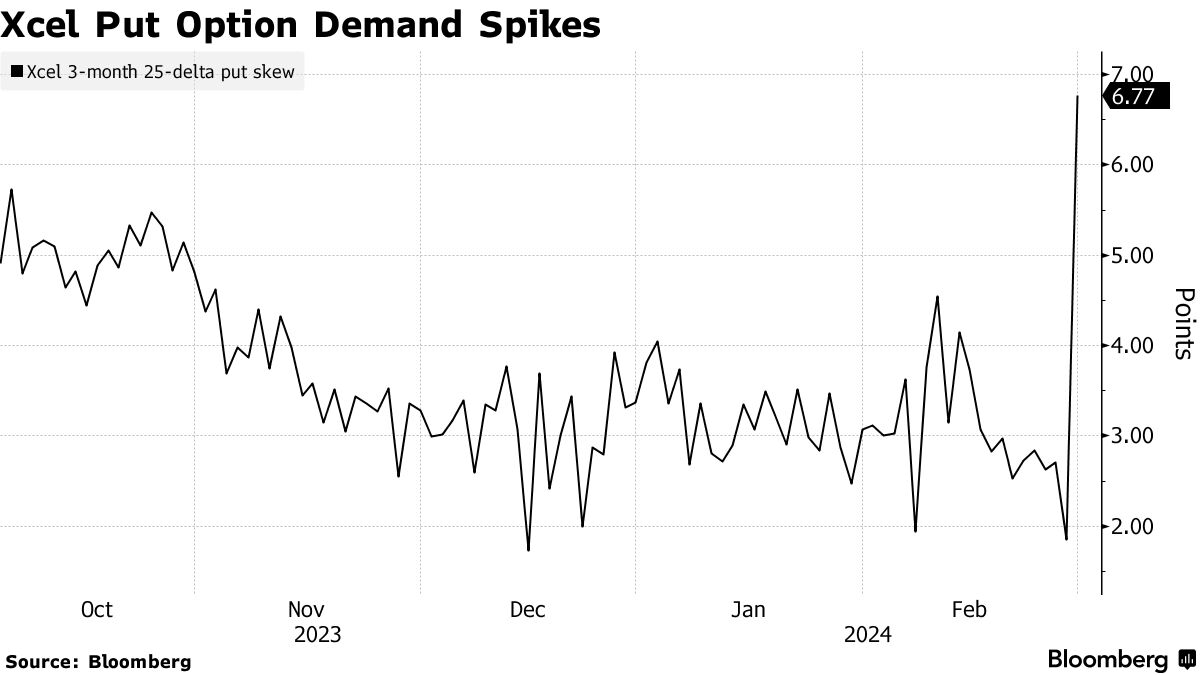 尽管如此,投资者纷纷涌入Xcel期权市场寻求保护,使交易量增加到近16,000份合约 — 超过平均水平的30倍 — 几乎所有合约都是看跌期权,押注股价还会进一步下跌。到期日在九月的看跌期权是最活跃的交易,允许持有者以45美元的价格出售超过40万股。看跌期权的成本增加了近五倍,表明了对价格下跌的保护需求。