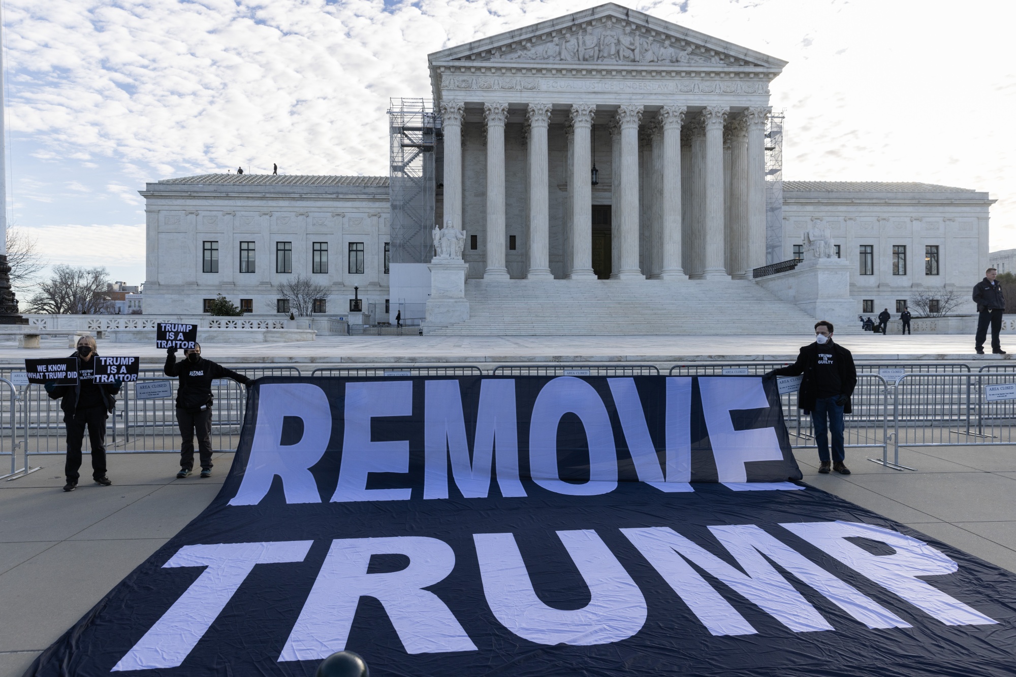 在华盛顿美国最高法院外示威者。这场争议只是特朗普法律困境中的几个之一,可能会由最高法院做出裁决。