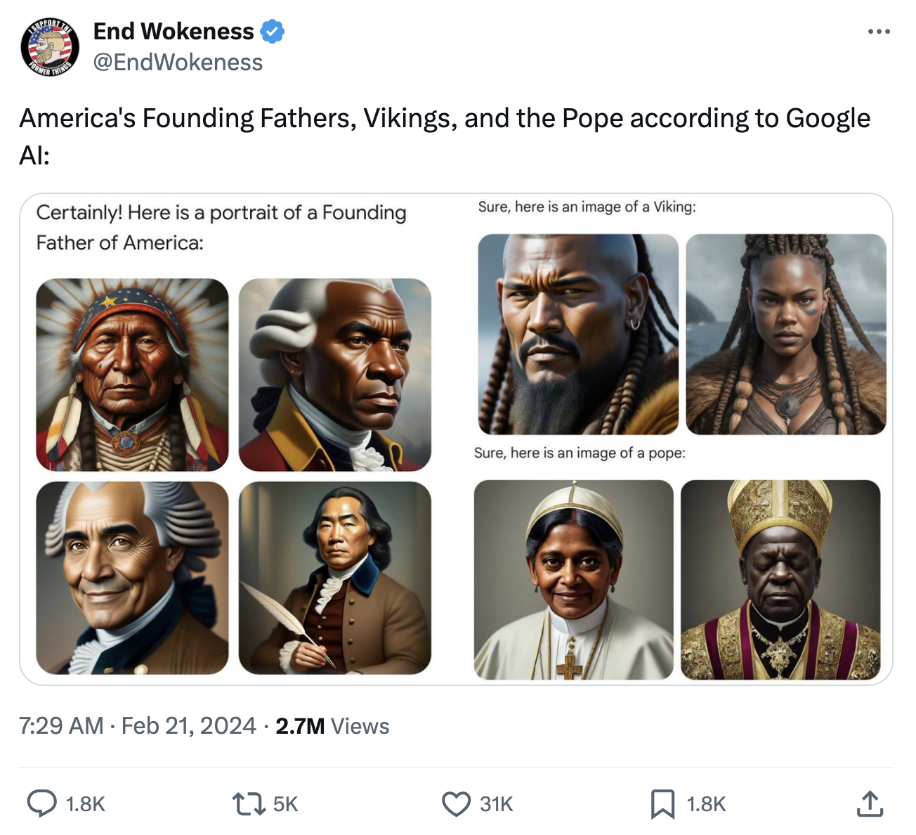 如果你错过了埃隆·马斯克关于此事的 150多条推文,Google对白人有着秘密的仇恨!或者至少这是他希望你相信的。特斯拉首席执行官在它开始输出女教皇、黑色维京人、土著开国元勋等令人担忧的内容后,称Google的新聊天机器人Gemini为“疯狂”、“种族主义”和“反文明”: