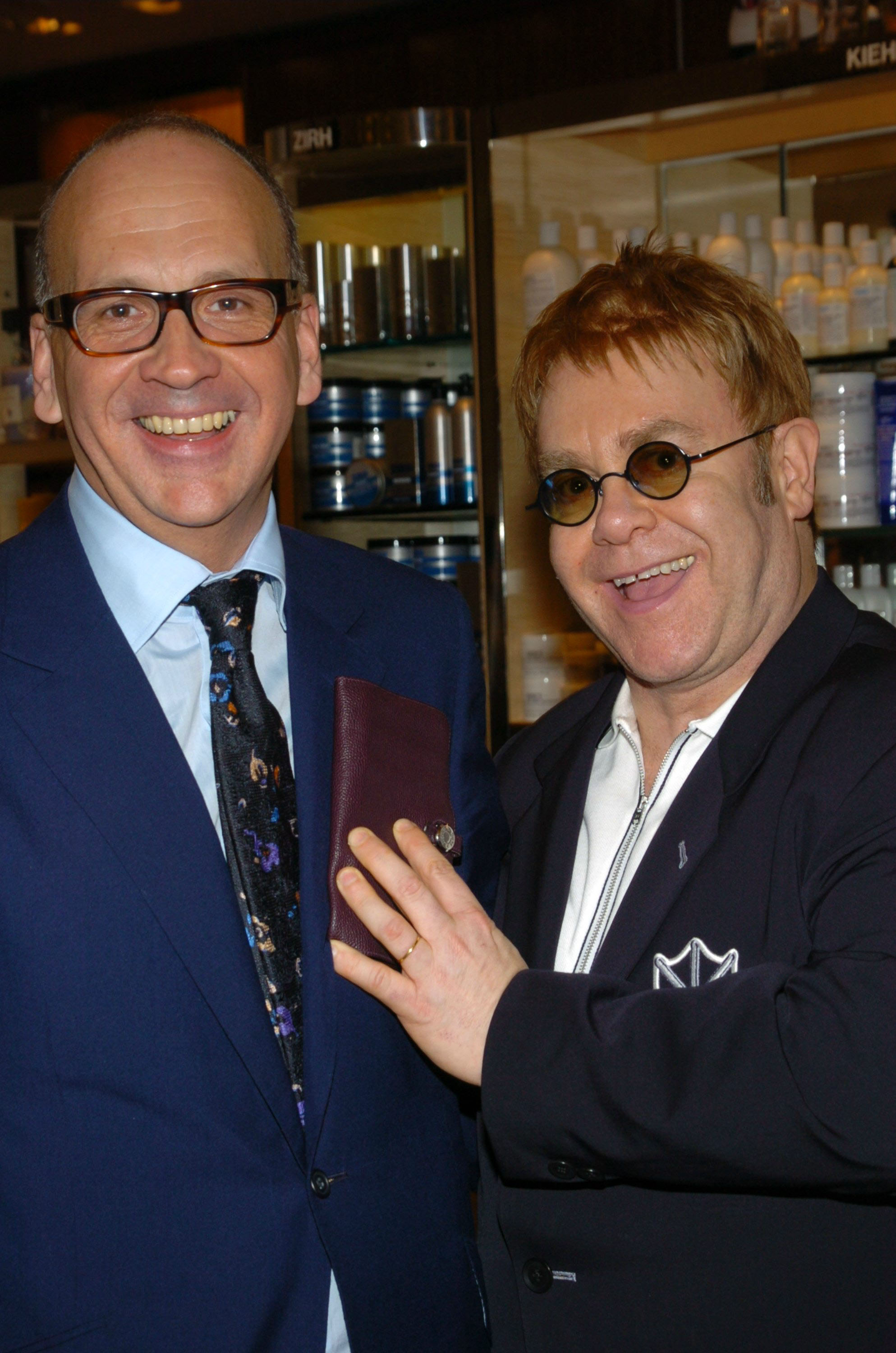 理查德·詹姆斯(左)与埃尔顿·约翰(Elton John)在2004年。摄影师:劳伦斯·卢西尔/盖蒂图片社迪克森——他的客户包括从说唱歌手Stormzy到威廉王子——表示,店铺的开业正值西装复兴时期。(以及领带。)似乎在新冠疫情期间一直穿着运动裤的人们在重新出现时想要改变。