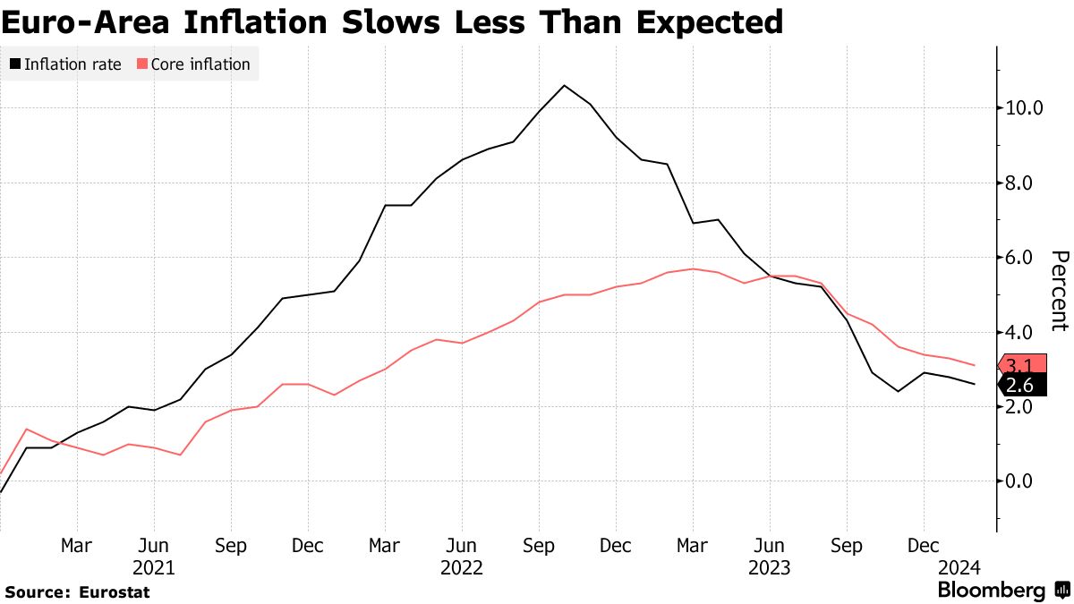 欧元区通胀放缓幅度低于预期,支持欧洲央行谨慎态度 - 彭博社