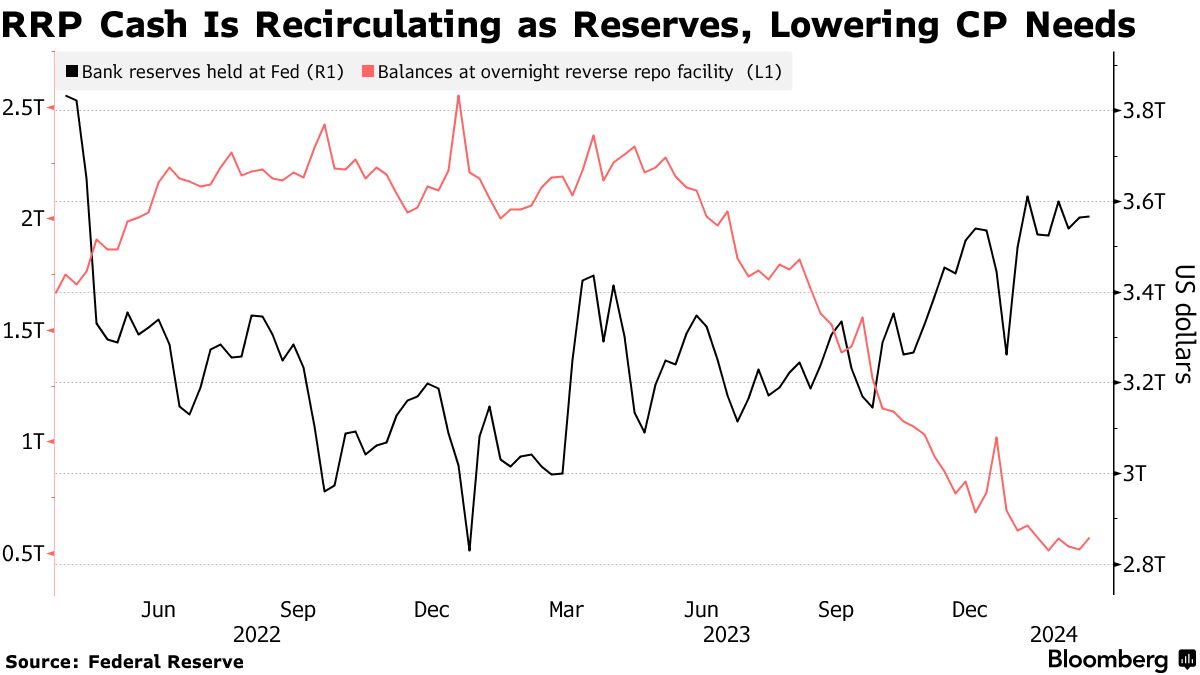 此外,根据阿巴特的说法,金融借款人需要利用无抵押融资市场的资金减少,因为现金离开了美联储的RPP,以储备的形式返回银行。