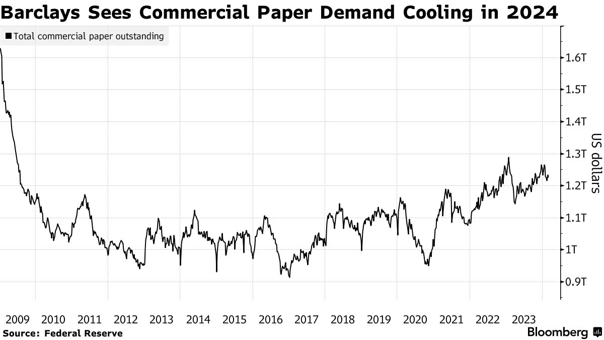 投资者对商业票据的渴望推动了未偿总额超过1万亿美元,并将借款成本从2023年中期水平减半,巴克莱表示。但随着证券交易委员会最新一轮规定对机构投资者对主要基金的需求产生影响,这种动态即将改变——主要基金往往投资于商业票据等高风险资产。