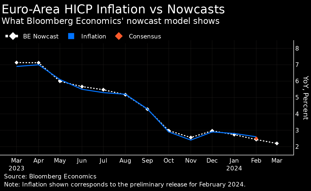 来自该地区四个最大经济体的国家数据都显示通胀要么明显放缓 —— 就像德国、法国和西班牙发生的那样 —— 要么像意大利一样,已经明显低于2%。