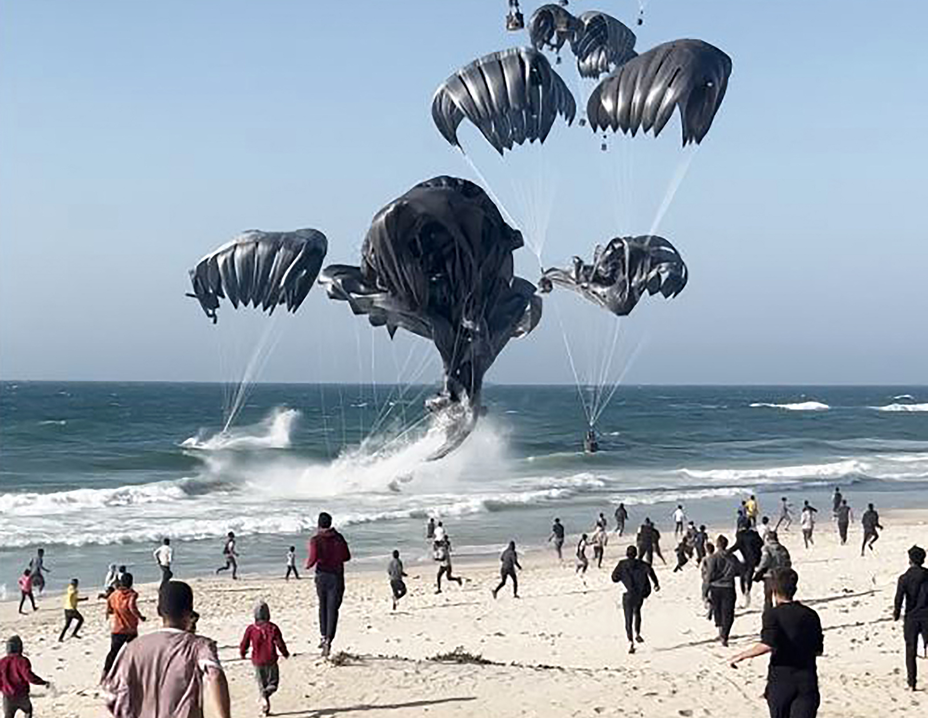 巴勒斯坦人跑向附着在食品包裹上的降落伞,位于加沙地带的海滩。摄影师:-法新社/盖蒂图片社美国计划进行更多空投,以推动更多援助物资进入加沙,部分原因是为了消除帮派和犯罪团伙抢夺物资并拍卖的动机。