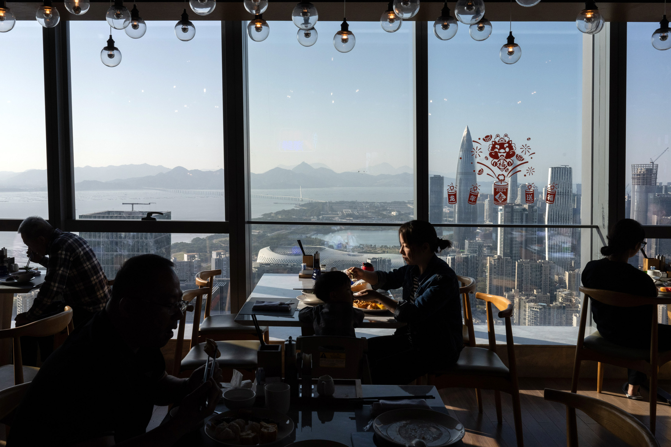 这种日益增加的联系正在改变两个城市的商业格局和社会结构。摄影师:Gilles Sabrie/Bloomberg“深圳更便宜,什么都有,”在香港餐饮业工作并与朋友去深圳唱卡拉OK的Kit说。与内地城市中的大多数受访者一样,出于隐私原因,Kit请求只使用他的部分姓名。“香港是我的家,但太贵了。”