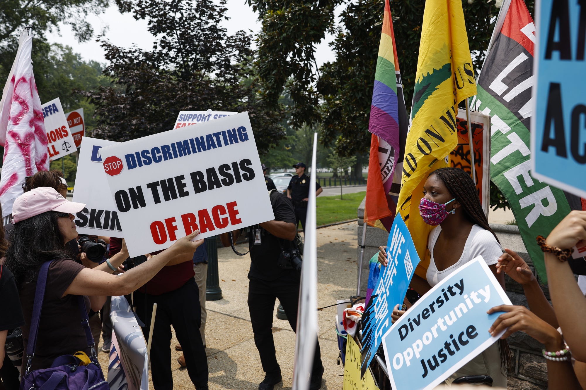 长期反对高等教育中平权行动并创立“公平招生学生组织”的爱德华·布卢姆,站在美国最高法院外。摄影师:Chip Somodevilla/Getty Images“我们正处于一个有趣的转折点,”花旗集团前首席多元化官安娜·杜阿特·麦卡锡说,该集团首席执行官简·弗雷泽是美国主要银行历史上唯一一位女性领导。