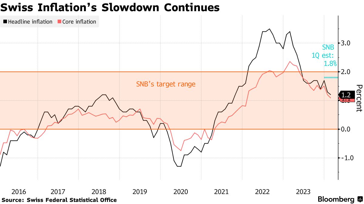 此次下降发生在有关央行可能加快货币宽松时间表的猜测不断增加之际。尽管大多数经济学家预测瑞士国家银行将等到9月份才进行首次降息,但越来越多的分析师预计,6月份甚至在3月21日官员们下次政策决定时会有动作。