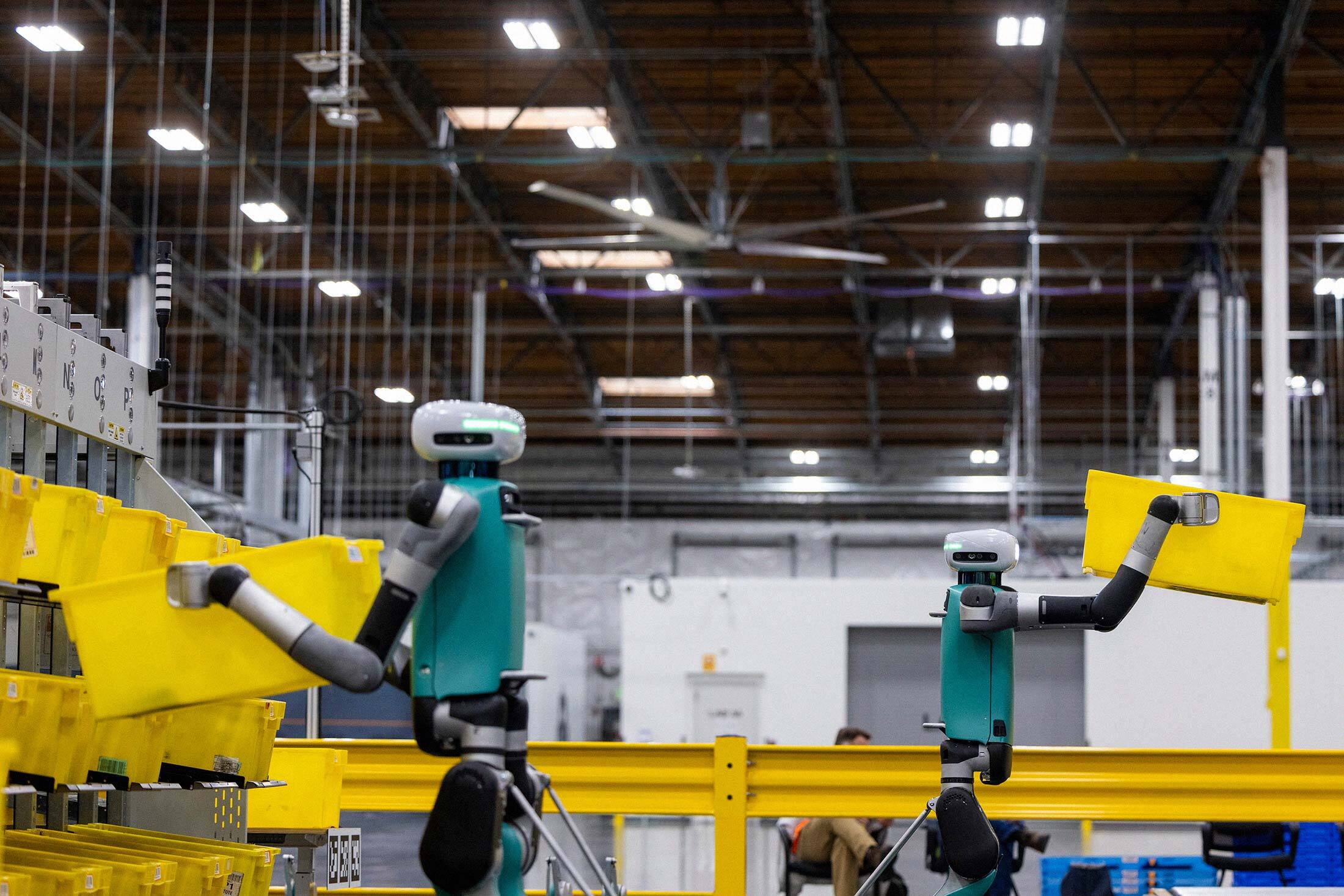 亚马逊仓库展示了工作场所人形机器人的一瞥 - 彭博社