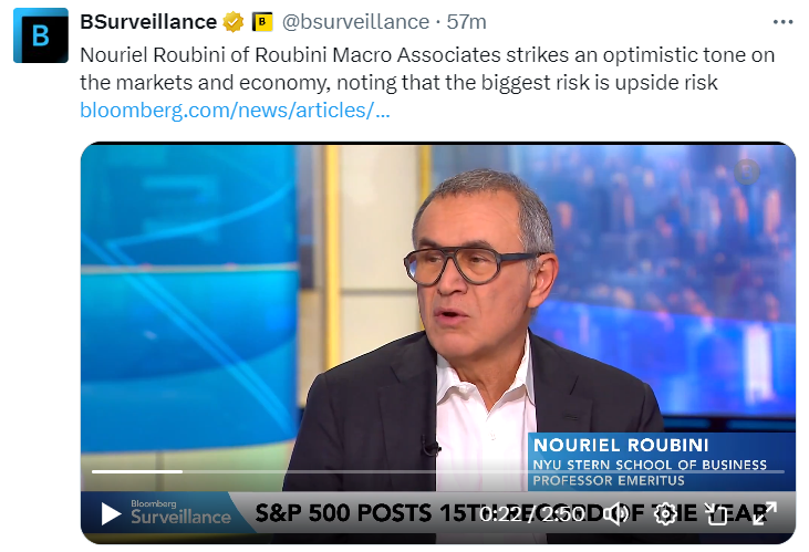 鲁比尼,这位经济学家和《巨大威胁:威胁我们未来的10个危险趋势,以及如何应对》的作者,在今天早上加入我们的监控时,对大多数威胁都表现得乐观。可能的最大风险?经济过于强劲。