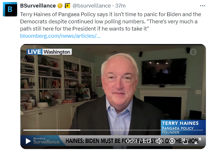 《纽约时报》是最新一家发现拜登太老 — 81 岁 — 无法连任的新闻媒体,与 一项在摇摆州进行的彭博社/晨间咨询民调 结果呼应。在与唐纳德·特朗普的竞争中,他继续没有得到对美国经济的认可,而特朗普被认为将在明天的超级星期二初选中大获全胜。尽管如此,海恩斯认为拜登有机会获胜。