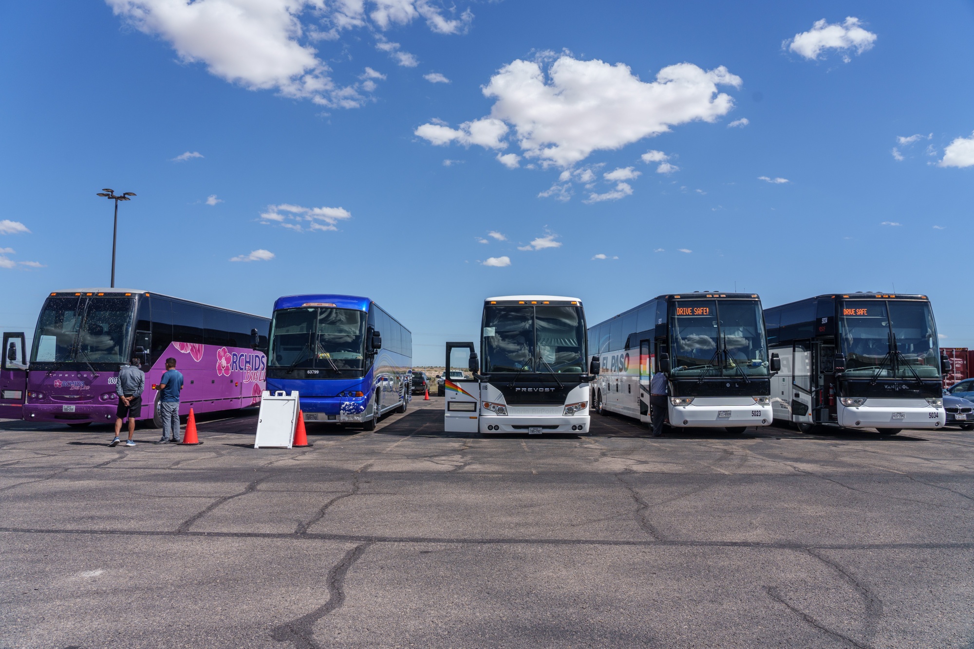 为了运送移民前往芝加哥或纽约而包租的巴士停在了美国德克萨斯州埃尔帕索的移民欢迎中心外,时间是2022年9月22日。摄影师:Paul Ratje/Bloomberg从纽约到丹佛,城市和州政府已要求总统乔·拜登支付他们为接待移民提供住所的费用。到目前为止,他们并没有得到太多帮助。