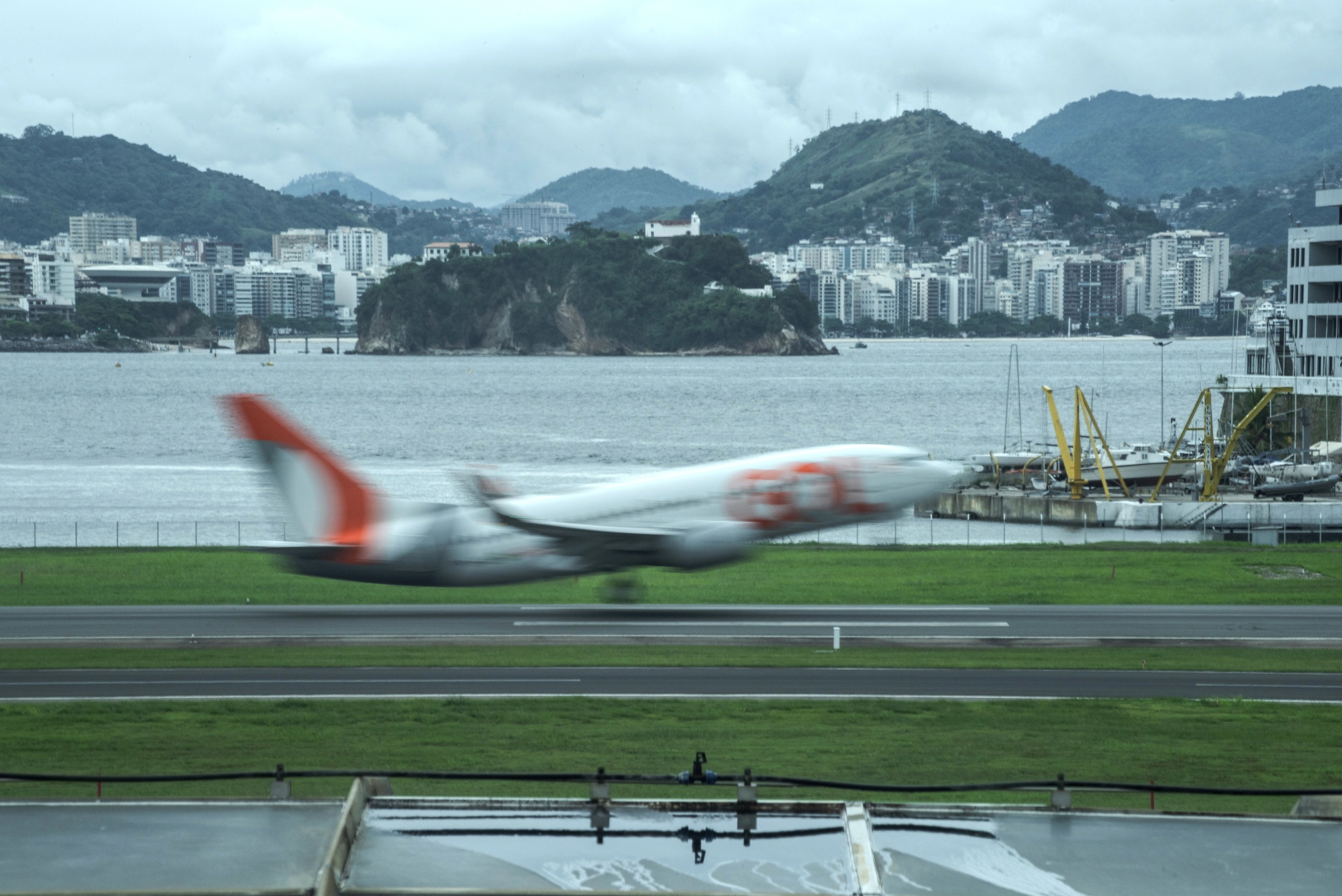 一架Gol航空公司的波音737-800客机在里约热内卢桑托斯杜蒙特机场滑行。