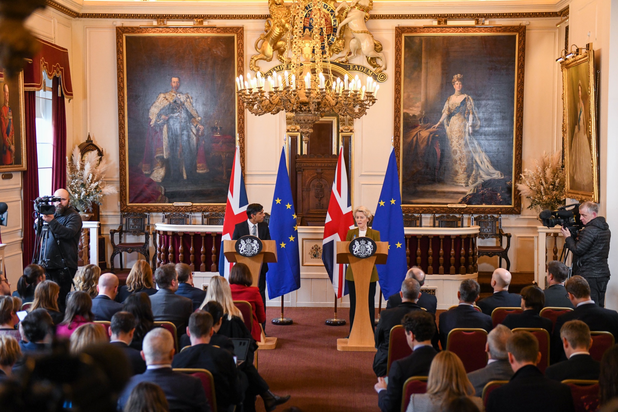 英国财政大臣里希·苏纳克(左)和欧盟委员会主席乌苏拉·冯·德莱恩在2023年2月27日在英国温莎举行的一场关于脱欧协议的联合新闻发布会上。摄影师:克里斯·J·拉特克利夫/彭博社两党都希望从养老基金中释放数十亿英镑用于在英国进行投资,以寻求增长。保守党还承诺调整监管机构的激励措施,强调增长而不是监管,而工党表示将彻底改革规划以鼓励更多的住房建设。