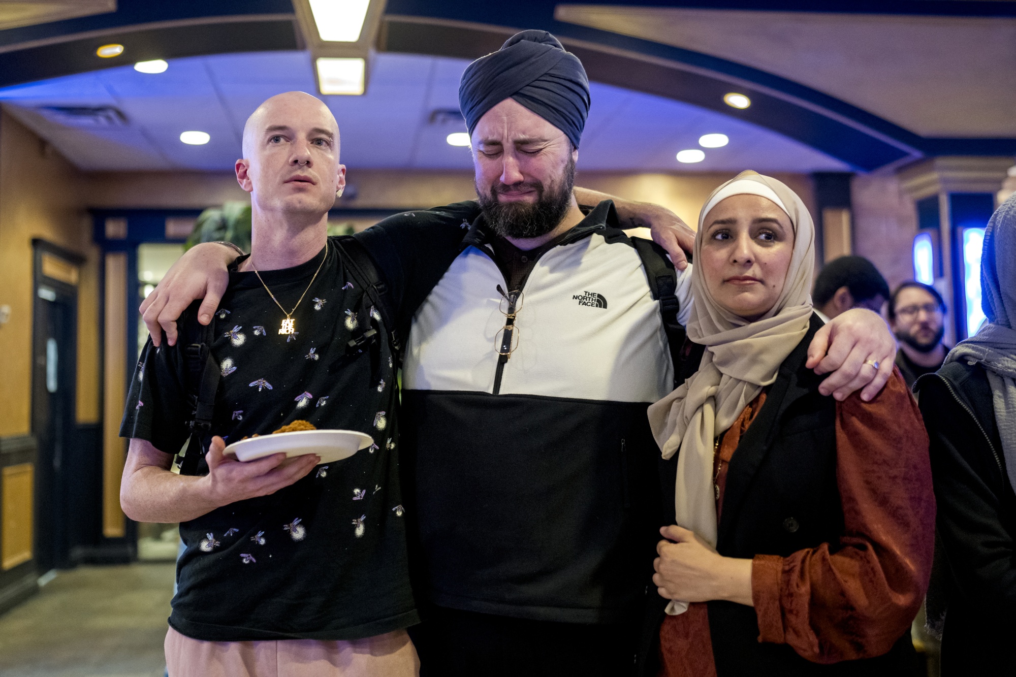 在2月27日由“倾听密歇根”主办的选举之夜集会上,与会者互相拥抱,该组织敦促居民在该州的民主党初选中投“未表态”。摄影师:Nic Antaya/Bloomberg一个名为“放弃拜登”的穆斯林美国人领导的团体计划以类似方式动员明尼苏达州和北卡罗来纳州的选民,要求他们在选票上填写“未表态”和“无偏好”,作为表达批评的方式。